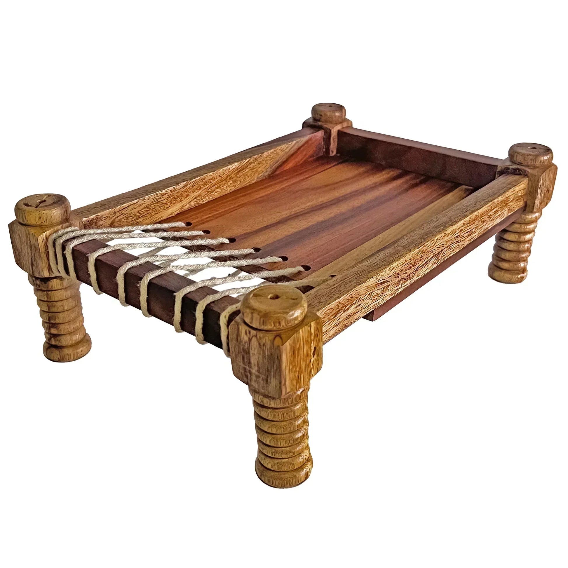 Marwar Khatiya Platter, the Indian Cot or Charpai or Khaat inspired Serving Tray or Platter. Multi-functional Wooden Serving Charpai Tray, great for food, breakfast, dinner, drinks, cake, or any food serving tray. This wooden tray beautifully serve cheese, crackers, meats, cookies, chocolates, bread, and any other appetizer. You can also use it to serve sandwiches, fruits, etc. In addition, you can use it in family activities, parties, offices, etc. Wooden handcrafted indian coat charpai serving tray made from rosewood. everybody will love this eye-catchy kitchenware. perfect gift for house warming, anniversary, Christmas, thanksgiving, valentine's day, birthday, holiday, mother's day, graduation and easter gifts.